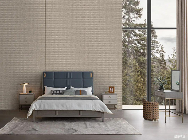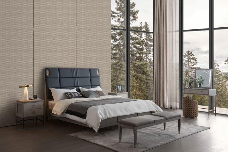 主臥擁有貼近自然的魔力,藍(lán)色床屏色彩與外界的自然綠相互吸引,凹凸的線性塊狀軟包設(shè)計,線條輕盈又流暢,打造了臥室背景強(qiáng)烈的立體感,金屬包裹的感應(yīng)小夜燈,守護(hù)你的每個夜晚,令睡眠更具安全感。