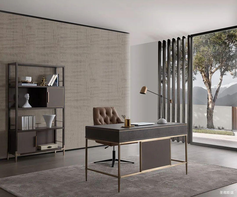 沉靜雅致的書房空間,溫潤實(shí)木與硬朗金屬線條相互配合,運(yùn)用基礎(chǔ)幾何,打造空間的高級感。輕奢質(zhì)感緩緩流淌,書籍整齊,擺件精致,無一不追求著精致細(xì)節(jié)與極致的品味,營造出時尚與沉穩(wěn)并列的氛圍,詮釋著居者對是生活環(huán)境的內(nèi)在追求。