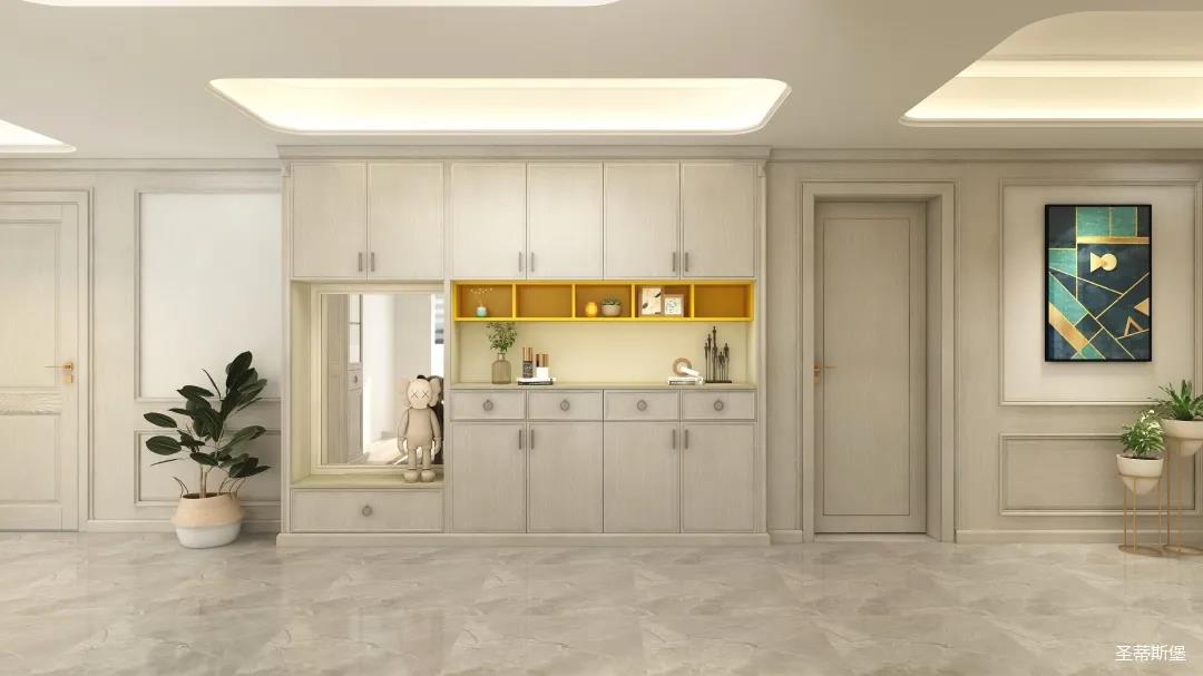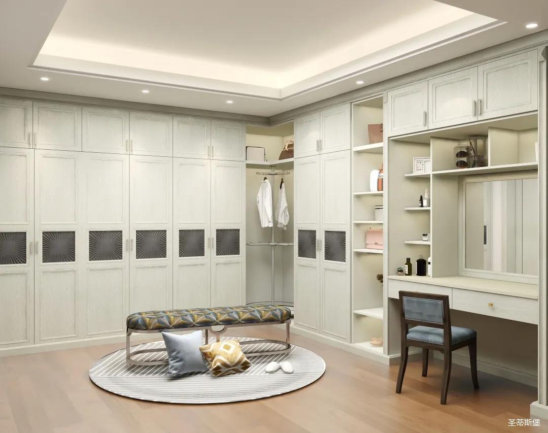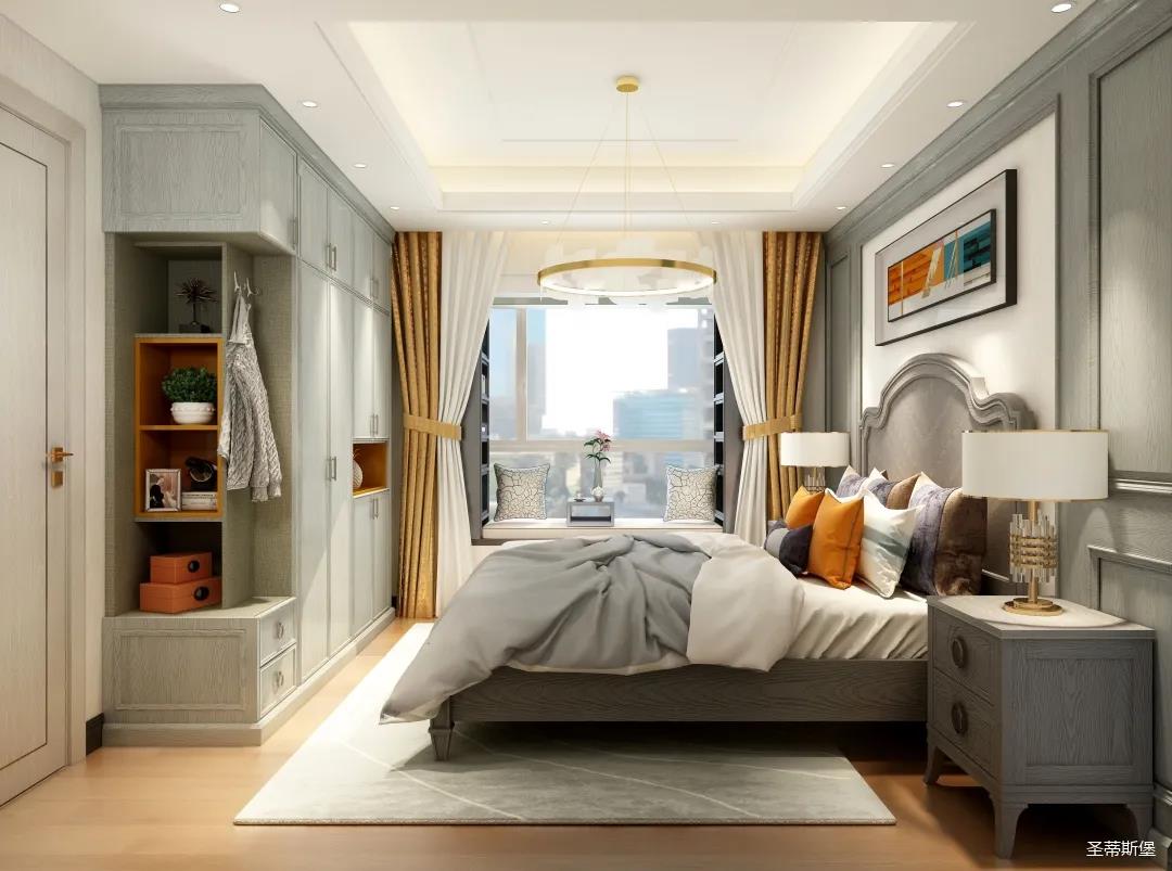 ▲業(yè)主喜歡低調(diào)輕奢的空間格調(diào),設(shè)計(jì)師從功能出發(fā),賦予空間舒適的感受,打造專屬的衣帽間,滿足業(yè)主日常買買買的儲(chǔ)物喜好。同時(shí)也將藝術(shù)元素融入美式現(xiàn)代風(fēng)格,利用空間的色彩、紋理、家具、配飾、光線等表達(dá)空間情緒,再以黃銅金屬加持,營(yíng)造溫馨愜意的家居睡眠氛圍。