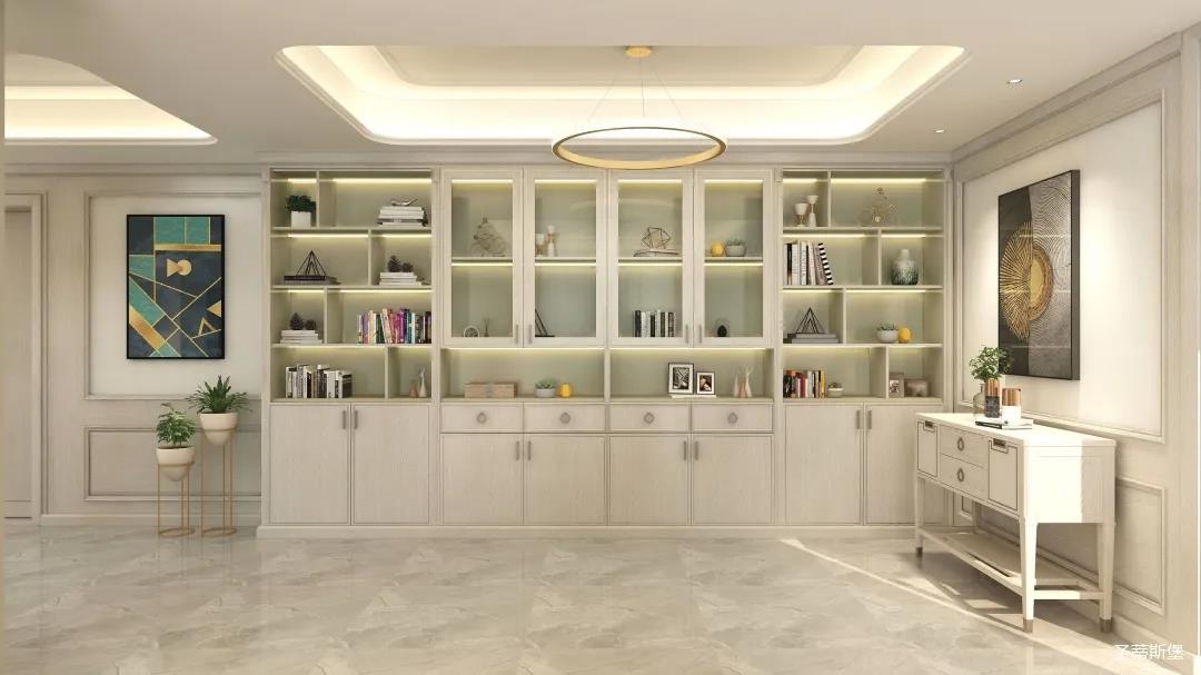 ▲?電視背景墻設(shè)計(jì)師完全根據(jù)業(yè)主家量尺所得,安裝的對(duì)稱裝飾柜,集裝飾美與實(shí)用性于一體,業(yè)主超喜歡收藏,設(shè)計(jì)師也完全滿足了業(yè)主對(duì)空間儲(chǔ)物的需求。