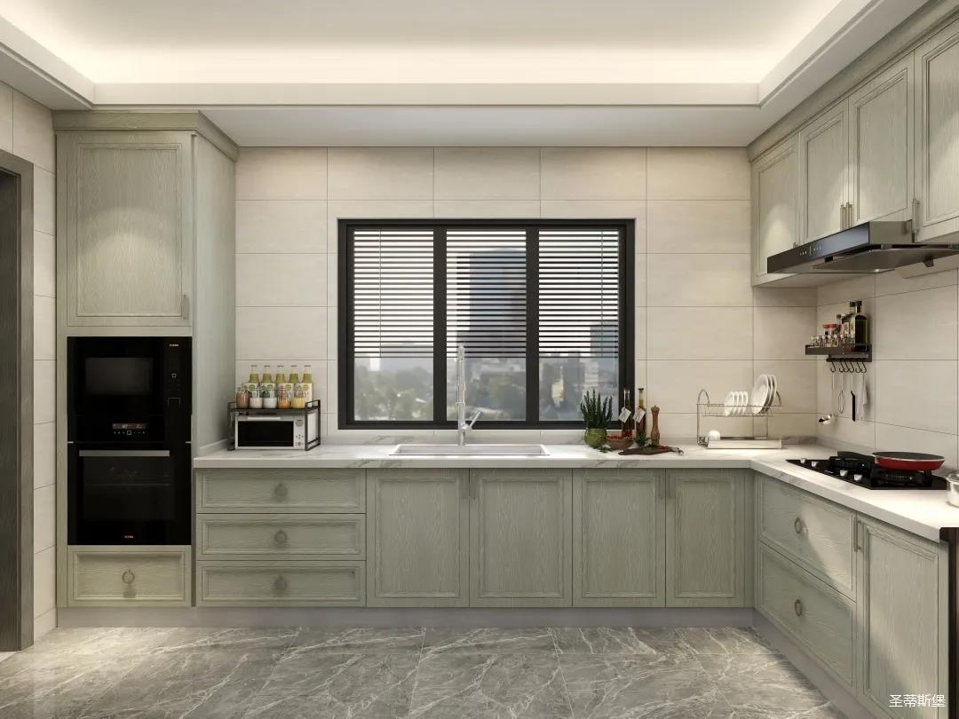 ▲廚房運(yùn)用幾何線條鋪滿一整面墻,是滿滿的靈動(dòng)和美感,實(shí)木材質(zhì)的質(zhì)感賦予了廚房空間品質(zhì)與格調(diào)。按比例分配大小,打造成儲(chǔ)物格框架,讓每個(gè)角落都留下業(yè)主生活的痕跡。