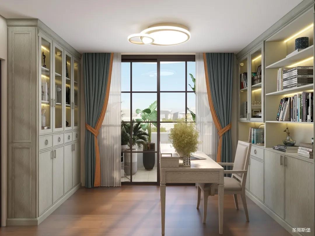 ▲書(shū)房設(shè)計(jì)不放過(guò)每一面墻,實(shí)木鋪滿整個(gè)空間,親近自然的靜謐感油然而生,陽(yáng)光透過(guò)玻璃灑進(jìn)來(lái),落在地面上形成斑駁光影,一本喜愛(ài)的書(shū)、一杯咖啡、沉浸在閱讀的樂(lè)趣之中,時(shí)光荏苒、歲月靜好。