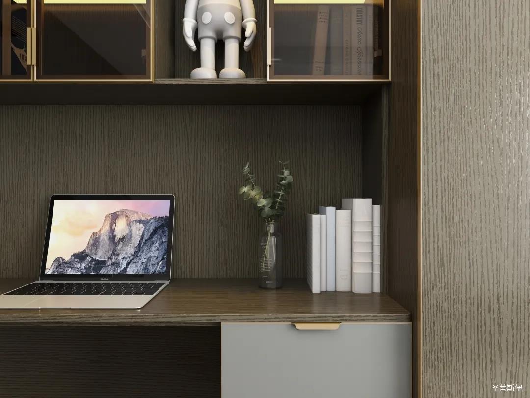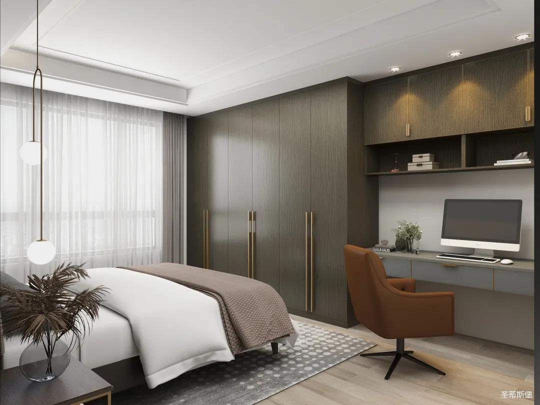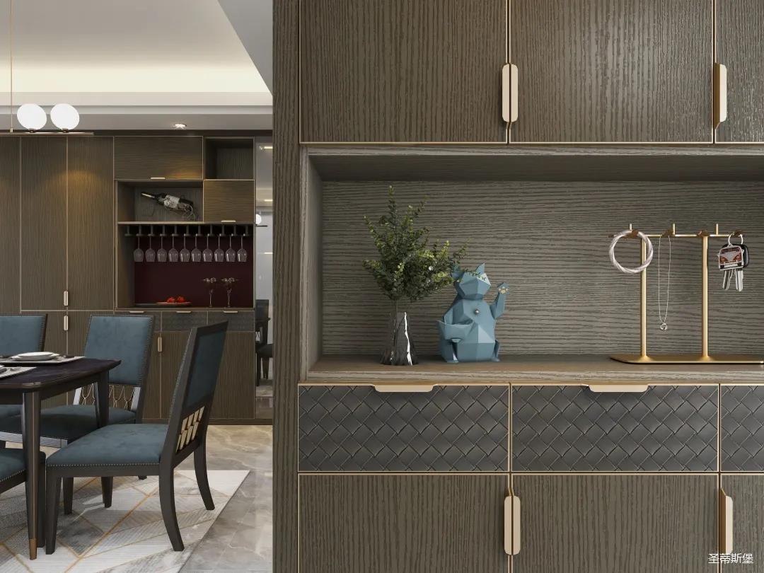 材質(zhì)的交替與光影的變換,具有濃濃的現(xiàn)代簡(jiǎn)奢色彩。獨(dú)一無(wú)二的英倫爵士灰定制柜,由延邊鑲嵌的香檳金拉絲金屬分割,線(xiàn)條流暢且奢華,不僅代表著時(shí)尚,也崇尚了實(shí)木韻味。設(shè)計(jì)師將現(xiàn)代、實(shí)用、精致的藝術(shù)設(shè)計(jì)風(fēng)格應(yīng)用其中,更是精致生活方式的藝術(shù)演繹。在平靜的空間中表現(xiàn)出獨(dú)特的藝術(shù)骨感,滿(mǎn)足我們對(duì)精致生活的精神追求。