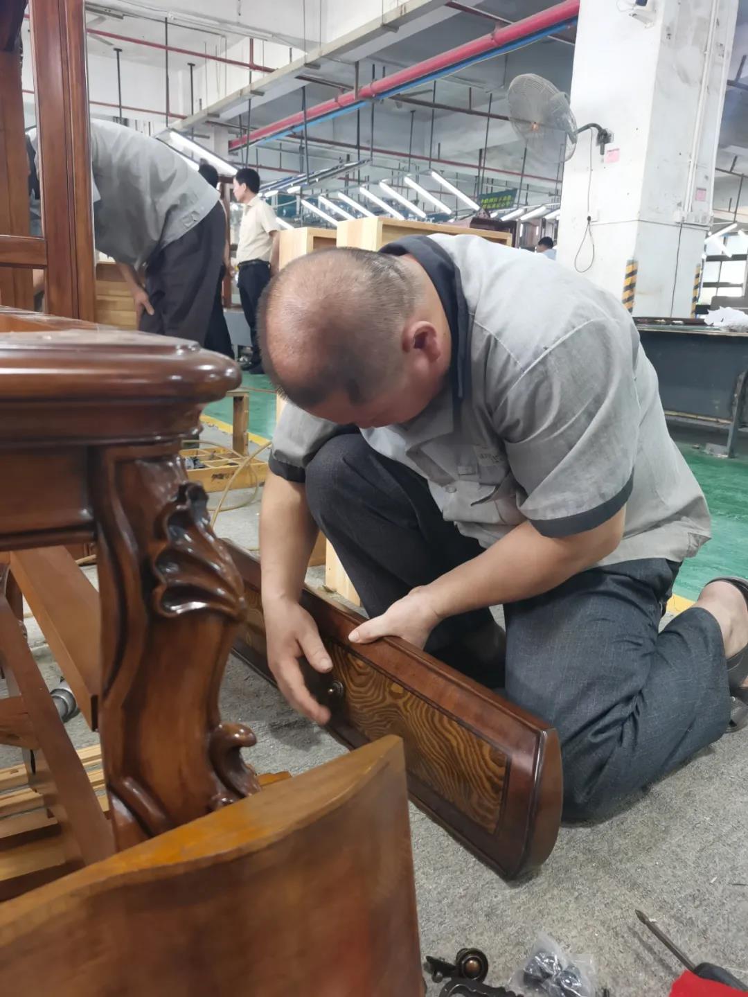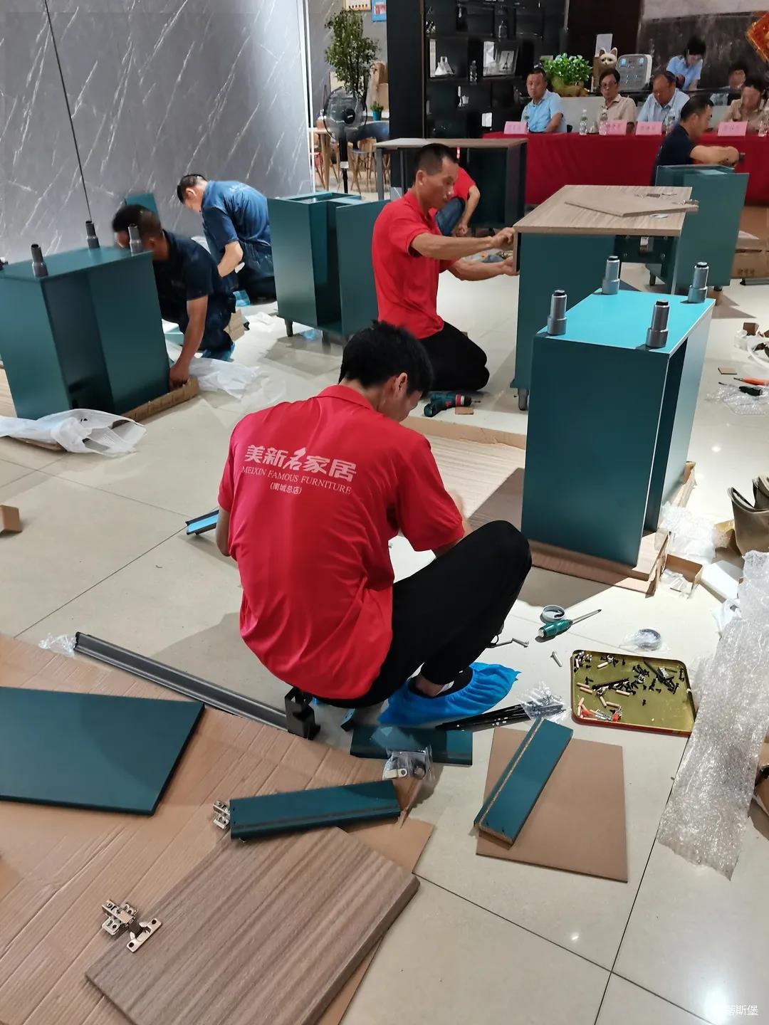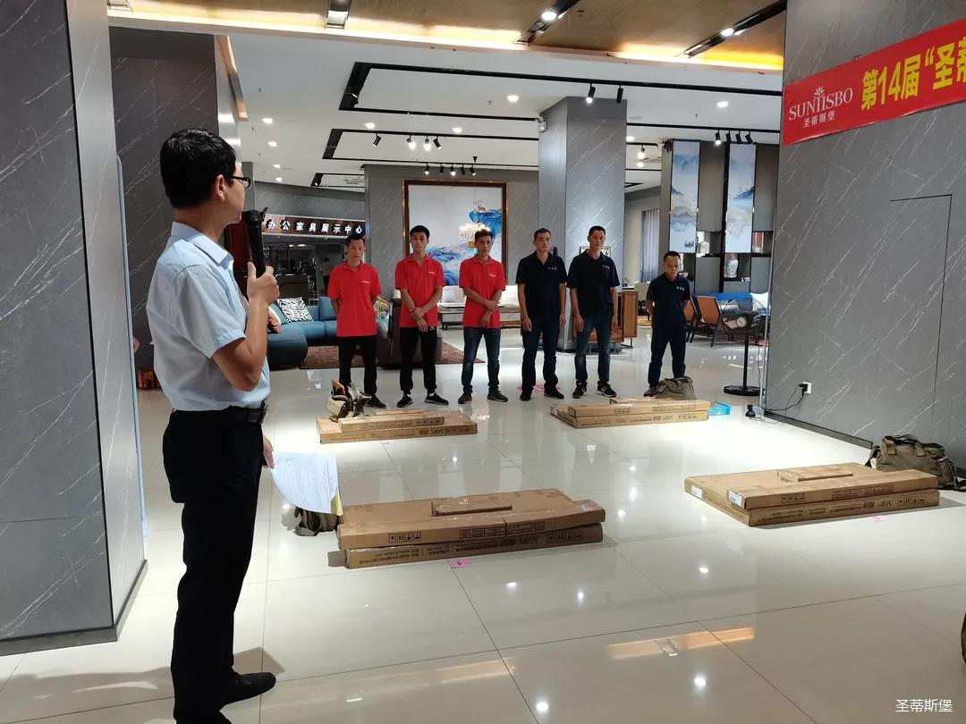 七月,一個熱情似火的季節(jié),一串串滑落的汗珠渲染著現(xiàn)場安靜而緊張氣氛。比賽現(xiàn)場,來自江門金海馬商場和南城美新名家具商場的參賽選手各司其職,聚精會神地投入比賽,憑借著專業(yè)的技能,一絲不茍的將一個個小部件嫻熟而準確無誤地組裝起來,打造高質量,細品質的家具產(chǎn)品。