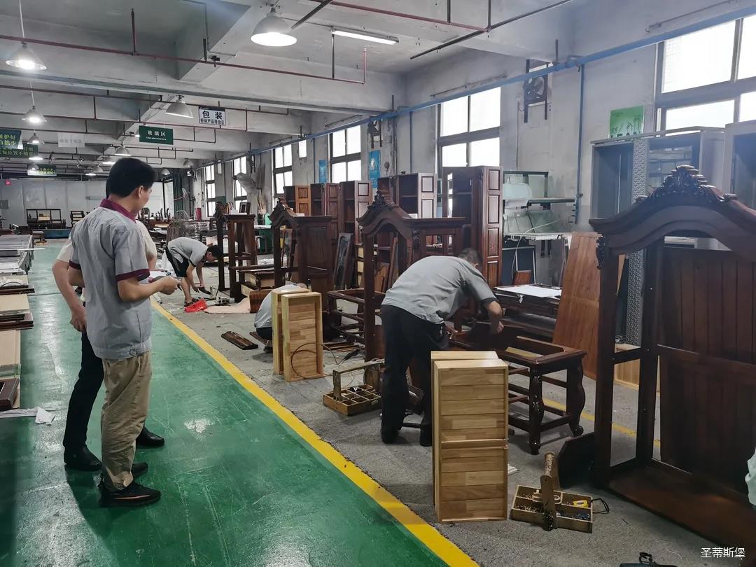 本屆技能競賽設置為工業(yè)組和商業(yè)組,共設競賽項目8項,其中,工業(yè)組競賽包含了打滾邊、打銅釘、自身產(chǎn)品組裝、成品組裝、柜體噴底色、修色、板材開料等七大細項。商業(yè)組以組裝辦公臺、床頭柜為主。