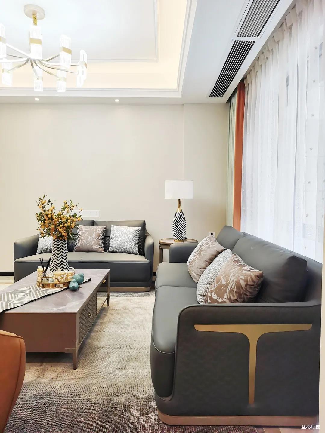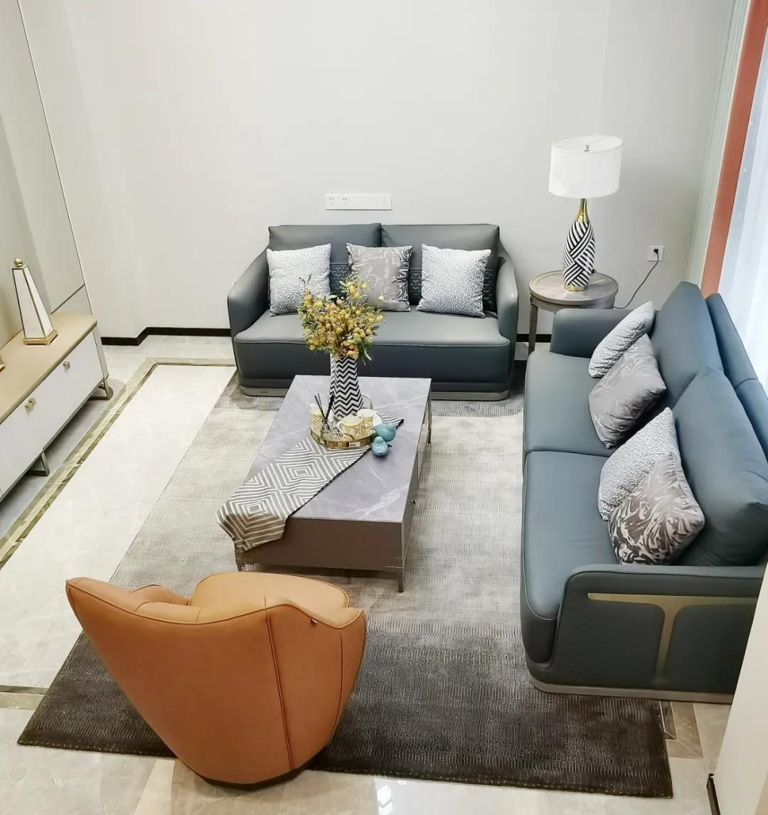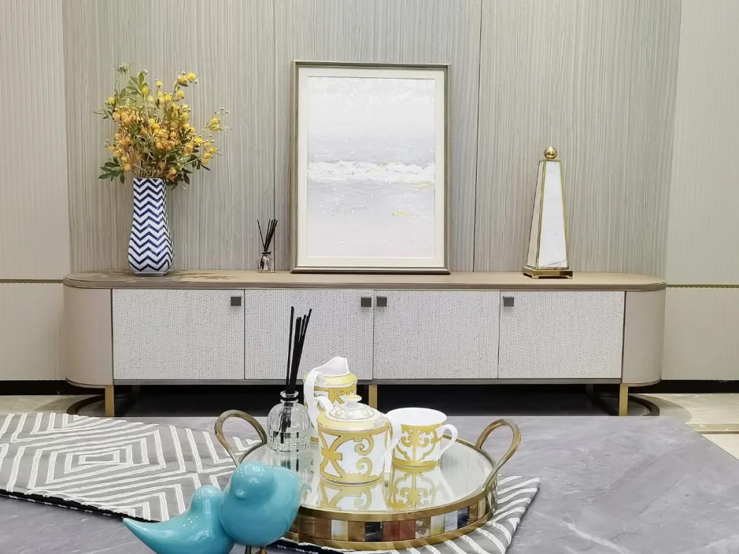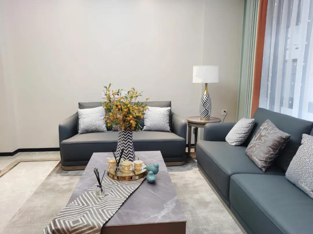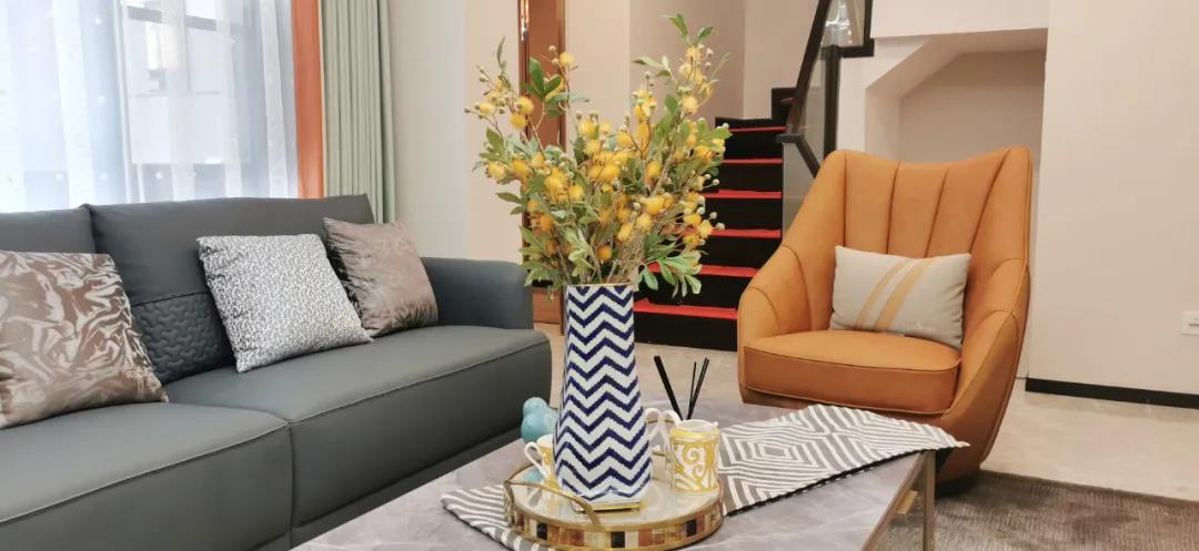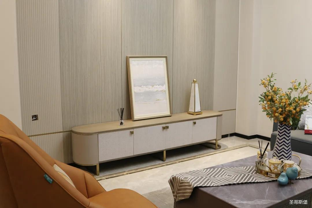 淺灰為基底的飾面與低飽和度的深色沙發(fā)相互映襯,產(chǎn)生強(qiáng)烈的視覺(jué)沖擊,深色的家具讓空間從視覺(jué)上衍生出一種縱深感。巖玻的質(zhì)感與真皮編織的紋理盡顯現(xiàn)代之美,細(xì)節(jié)陶瓷擺件注滿了空間優(yōu)雅的藝術(shù)氛圍。