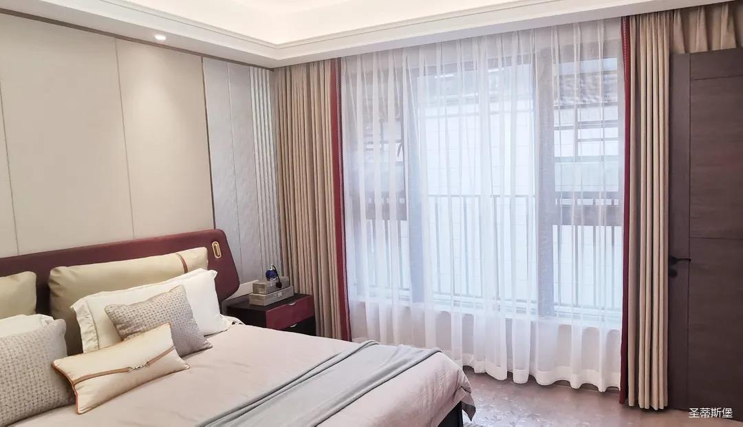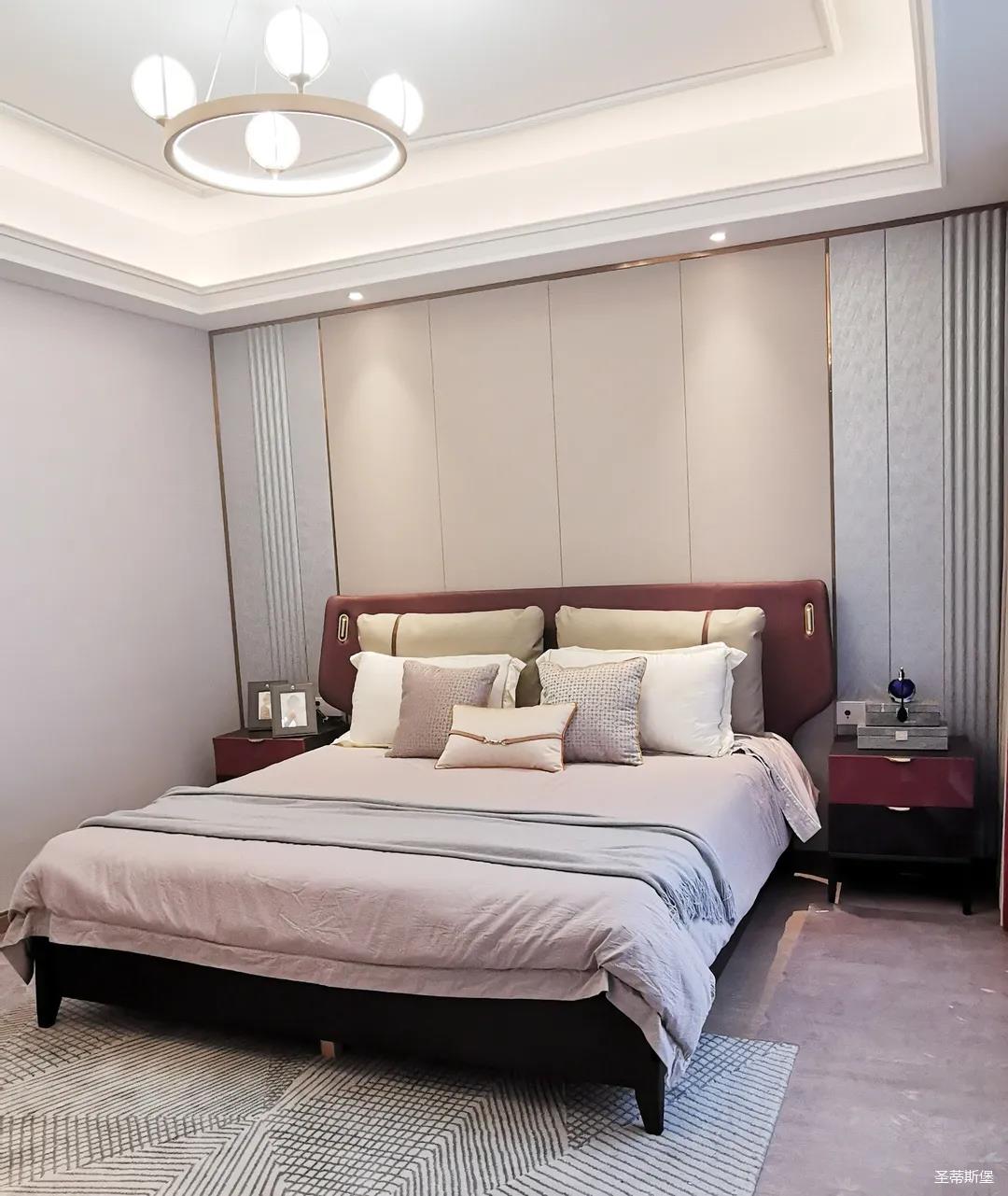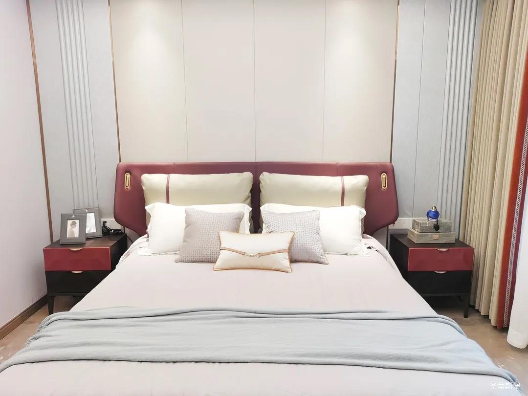 三樓的主人房設(shè)計(jì)風(fēng)格更偏向簡(jiǎn)約,浪漫的酒紅色床屏運(yùn)用了曲面造型,融合了極簡(jiǎn)主義美學(xué)和輕奢元素,小型夜間感應(yīng)燈設(shè)計(jì)讓每一處細(xì)節(jié)都充滿著時(shí)尚優(yōu)雅的氣息。夜間倚靠在厚實(shí)的軟包上,時(shí)光好像在不知不覺(jué)中慢了下來(lái),讓我們能品味和咀嚼生活的氛圍。