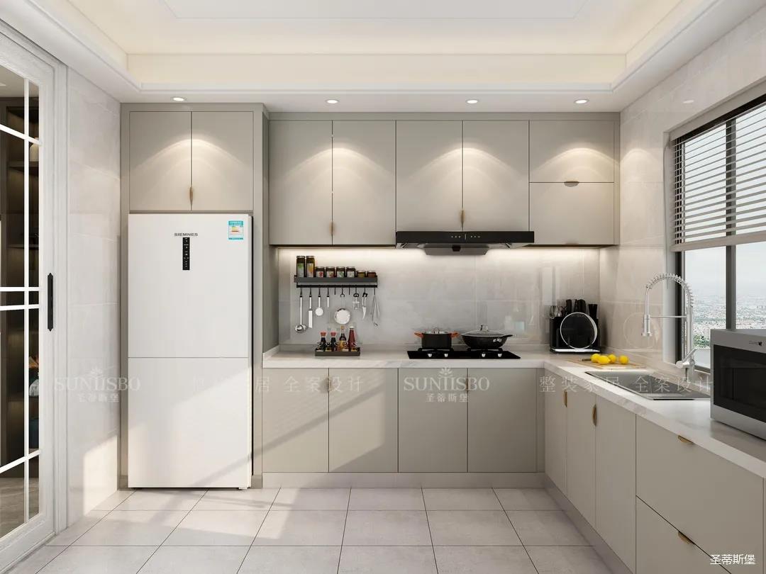 客餐廳、廚房的極簡風(fēng)格和諧統(tǒng)一,鑒于現(xiàn)代家庭中日益增加的廚房電器設(shè)備,設(shè)計(jì)師在用廚動(dòng)線上頗為用心,L型的動(dòng)線將生活習(xí)慣自然的融入整體家居之中。保持著中性簡約的調(diào)性,運(yùn)用溫潤的實(shí)木材質(zhì)與剛毅的線條,營造出摩登時(shí)尚的氛圍。將廚房區(qū)域自然融入整體家居之中。保持著中性簡約的調(diào)性,用溫潤的原木材質(zhì)或是圓潤的曲線線條,平衡空間的冷峻。