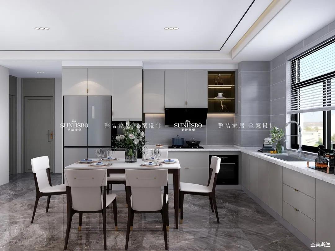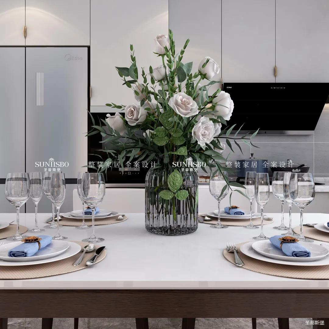 餐廚采用開(kāi)放式布局,實(shí)現(xiàn)開(kāi)闊明朗的公共空間,也提高了居家交流互動(dòng)的便利性。減少不必要的物件,加上合理的設(shè)計(jì),布局出和諧安全的居家環(huán)境。