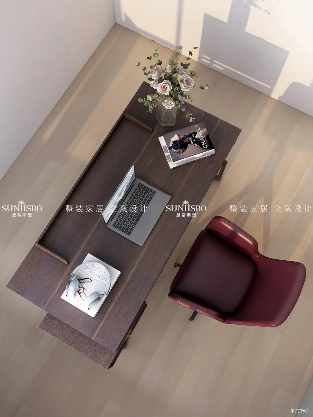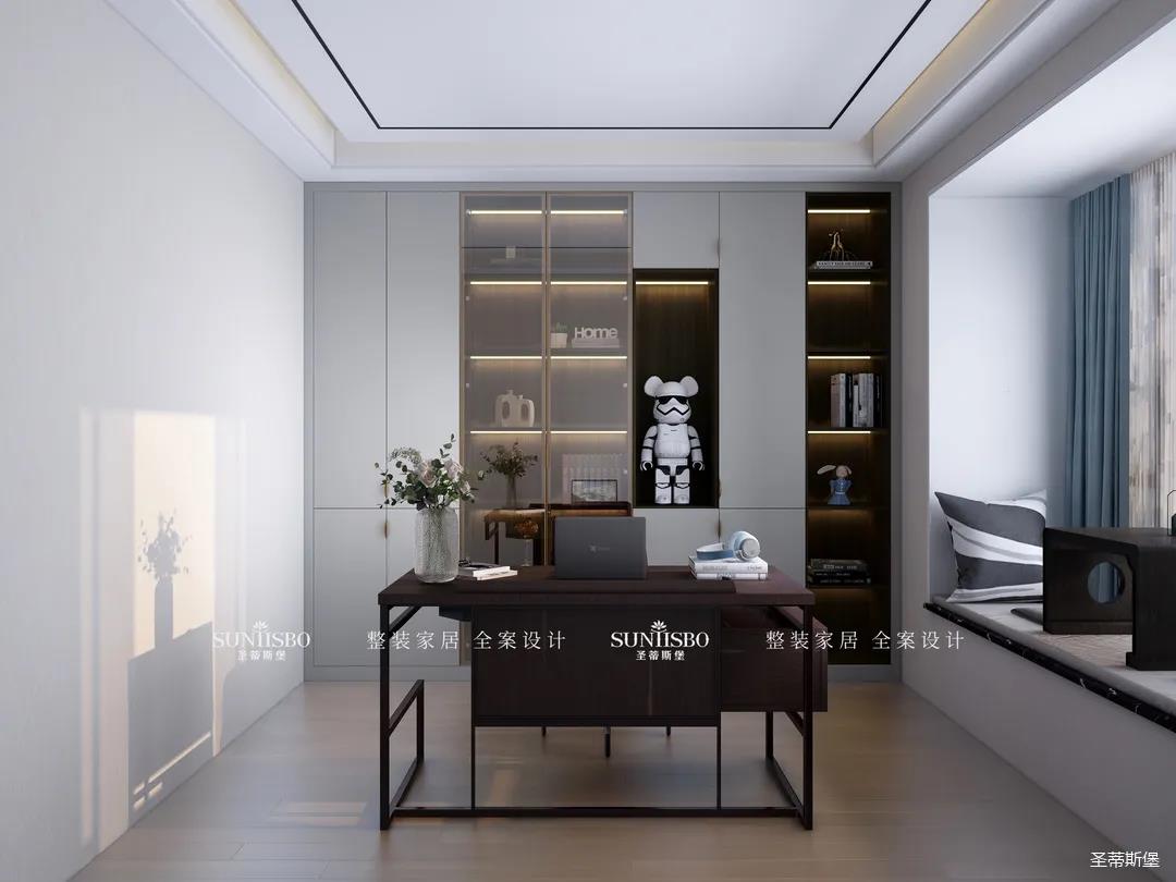 陽(yáng)光透過(guò)窗戶悄然進(jìn)入,光影浮動(dòng)間,實(shí)木書(shū)桌給書(shū)房騰出了一個(gè)安靜愜意的閱讀空間,偶爾放下書(shū)本,徑直探向窗外,慢享陽(yáng)光里慵懶的味道。