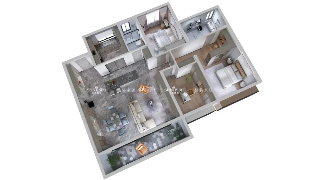 根據(jù)業(yè)主喜好,將三室兩廳改造為符合業(yè)主生活習(xí)慣的家居動(dòng)線;