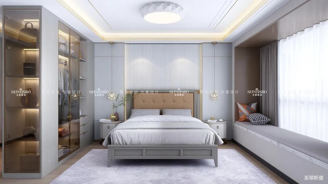 精于思而展于型,主臥將浮華的裝飾剔除,裝飾線連接各個(gè)區(qū)域,強(qiáng)調(diào)了空間的節(jié)奏與韻律。運(yùn)用時(shí)尚灰大面積展現(xiàn)著高級(jí)感,讓不同色彩的家具結(jié)合,營(yíng)造出與眾不同的韻感與雅致,給人良好的睡眠體驗(yàn)。