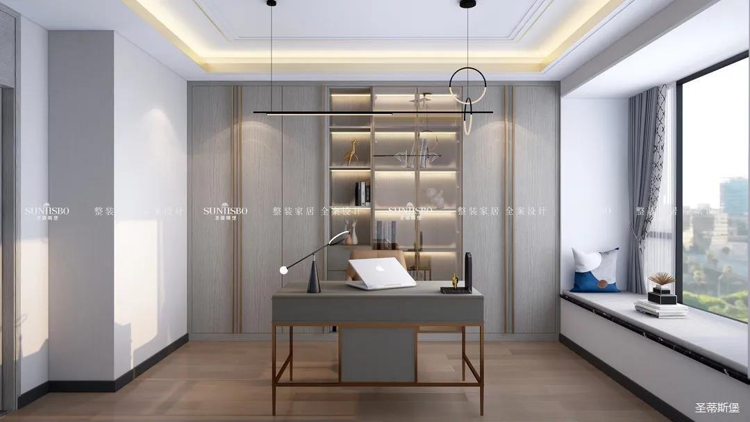 業(yè)主鐘愛(ài)閱讀,設(shè)計(jì)師將其中一間房打造為書(shū)房,設(shè)計(jì)的風(fēng)格從布局到陳列,從色調(diào)到材質(zhì),都能給人一種優(yōu)雅從容的感受。讓業(yè)主在繁忙的生活中,有一處能夠讓人靜心的空間品茶閱讀。
