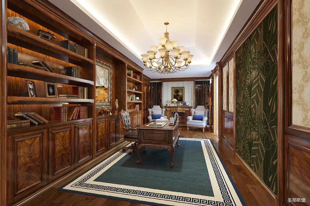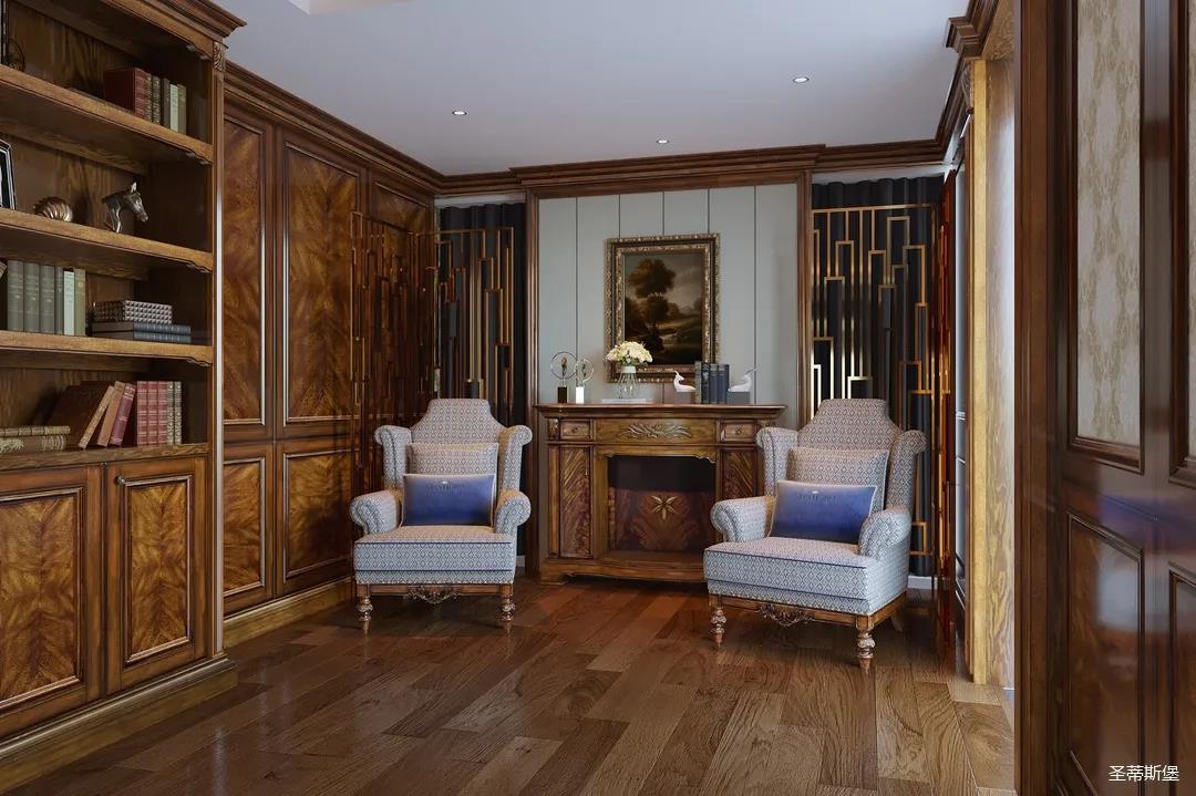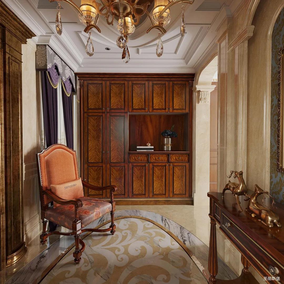 邁進(jìn)書(shū)房,仿佛就來(lái)到另一個(gè)清麗的世界,拋開(kāi)身后的塵囂,恍如隔世般撫慰著辛勞一天的身心。每一物件都經(jīng)過(guò)設(shè)計(jì)師的精雕細(xì)琢,不管是布藝的紋理,木質(zhì)的雕飾,亦或是真皮的質(zhì)感,都讓大美的豪華一目了然。粗狂中透著柔美的線條,渾厚復(fù)古的色調(diào),讓空間顯得深沉而含蓄,置身其中即可感受到傳統(tǒng)的歷史痕跡與渾厚的文化底蘊(yùn)。