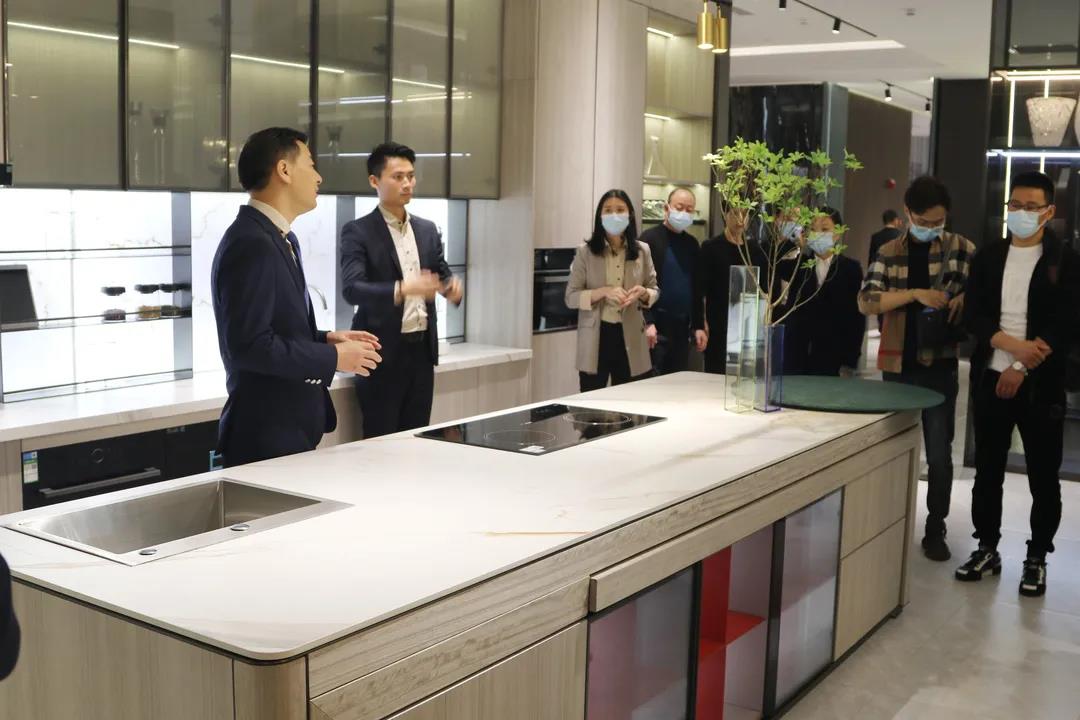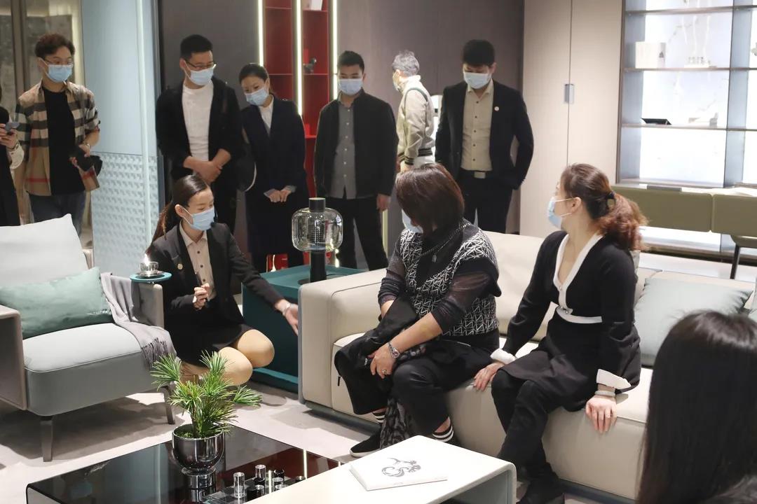 隨后,嘉賓們迫不及待地移步至位于集團(tuán)營(yíng)銷中心三樓的新品牌【西瑞】展廳。在潮味十足的展廳內(nèi),集團(tuán)營(yíng)銷總經(jīng)理陳玉偉先生圍繞著新時(shí)代下家居行業(yè)的發(fā)展趨勢(shì),對(duì)西瑞產(chǎn)品架構(gòu)和矩陣進(jìn)行了深度解析,并為嘉賓們?nèi)轿唤榻B了西瑞的產(chǎn)品定位,材質(zhì)工藝,以及“整裝定制·全案設(shè)計(jì)”的發(fā)展方向。全新的設(shè)計(jì)視角、個(gè)性十足的產(chǎn)品設(shè)計(jì)引來(lái)了現(xiàn)場(chǎng)嘉賓們的駐足品鑒。系列產(chǎn)品的“時(shí)尚新銳”、“潮流大氣”、“高級(jí)質(zhì)感”、以及極具新青年格調(diào)的定制空間贏得了現(xiàn)場(chǎng)嘉賓的由衷贊譽(yù)和高度認(rèn)可。