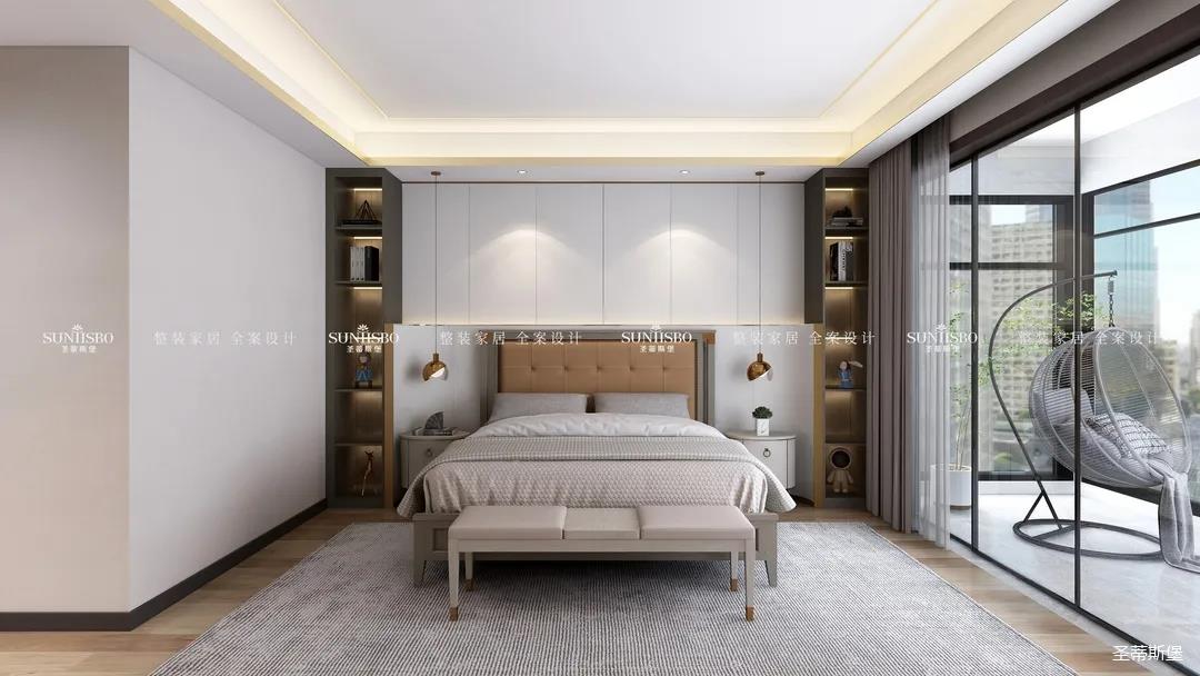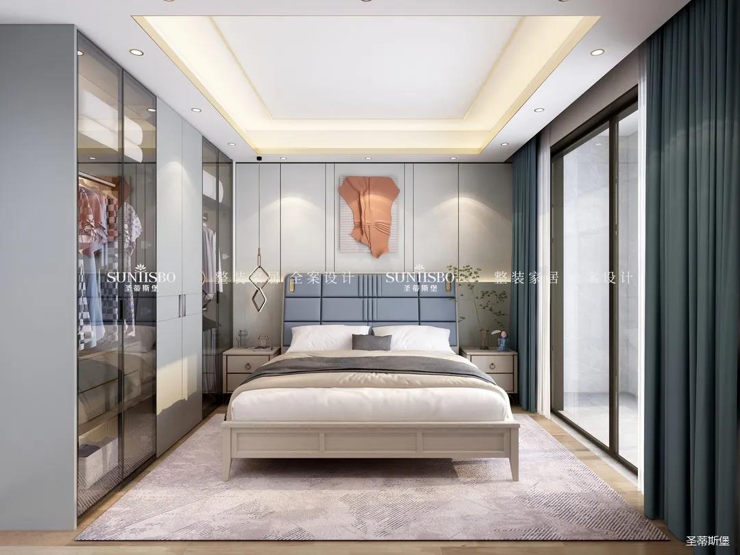 通過(guò)空間的疊加與縮放、玻璃透明屬性及肌理變化,塑造臥室簡(jiǎn)奢均衡的氣質(zhì),也讓整個(gè)房間靜謐又典雅,給業(yè)主以無(wú)限回味的安定感和幸福感。