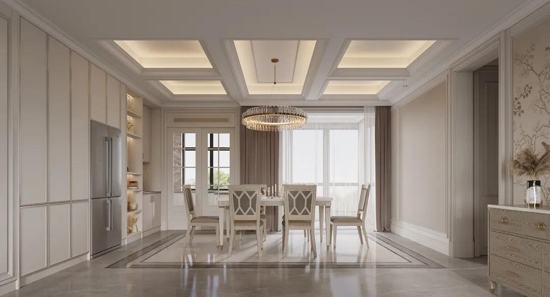 美輪美奐的天花吊頂,巧奪天工的護墻線雕,硬朗的美式線條和明亮金屬的輕奢質感,均展現(xiàn)著高雅與浪漫的生活腔調。