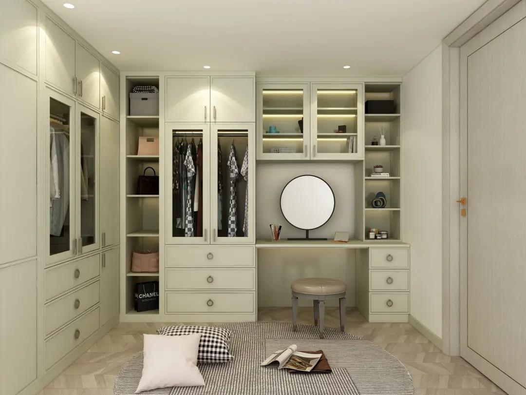 主臥衣帽間的衣柜結(jié)合妝臺一體設(shè)計,
