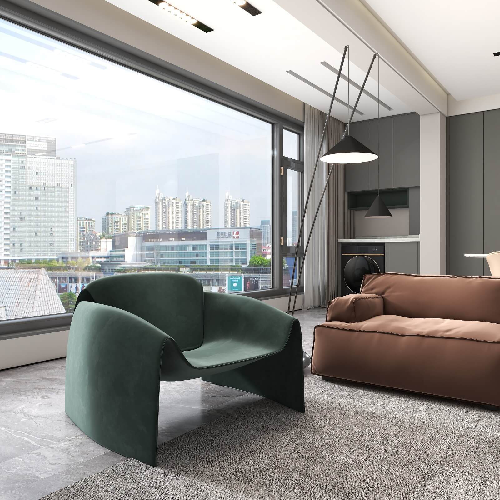長廊形式的西廚,引起視覺上的延伸效果,實現(xiàn)空間上的自由感,讓自然與光影去隨意裝飾,浪漫與溫馨的氛圍在其中蔓延。